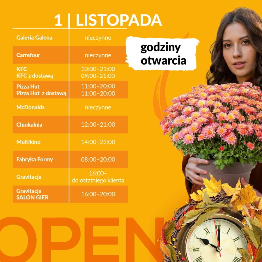 Sklepy Galerii Galena będą nieczynne, zapraszamy jednak do odwiedzenia lokali, które tego dnia pozostaną dla Was otwarte. Sprawdźcie godziny ich funkcjonowania.