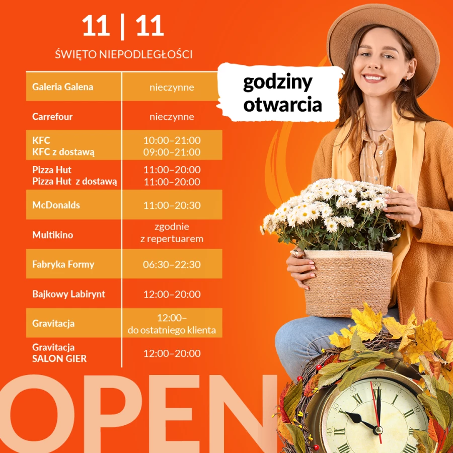 11 listopada w Święto Niepodległości sklepy Galerii Galena będą nieczynne.