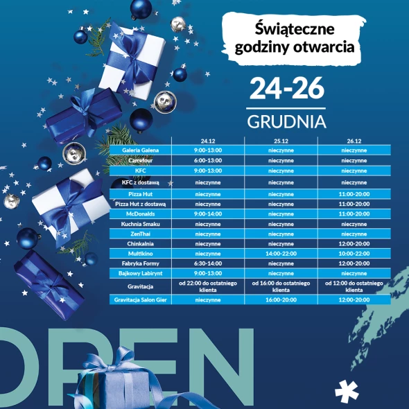 24-26.12 | Godziny funkcjonowania Galerii Galena w okresie świątecznym