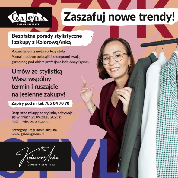 Zaszafuj nowe trendy! Odśwież swoją garderobę ze stylistką KolorowąAnką podczas jesiennej edycji wspólnych zakupów w Galerii Galena!