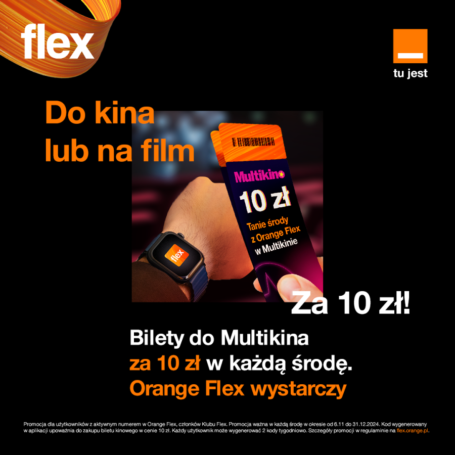 Szczegóły promocji są dostępne na stronie flex.orange.pl w regulaminie akcji, a repertuar filmowy na stronie www.multikino.pl oraz w aplikacji mobilnej Multikina.